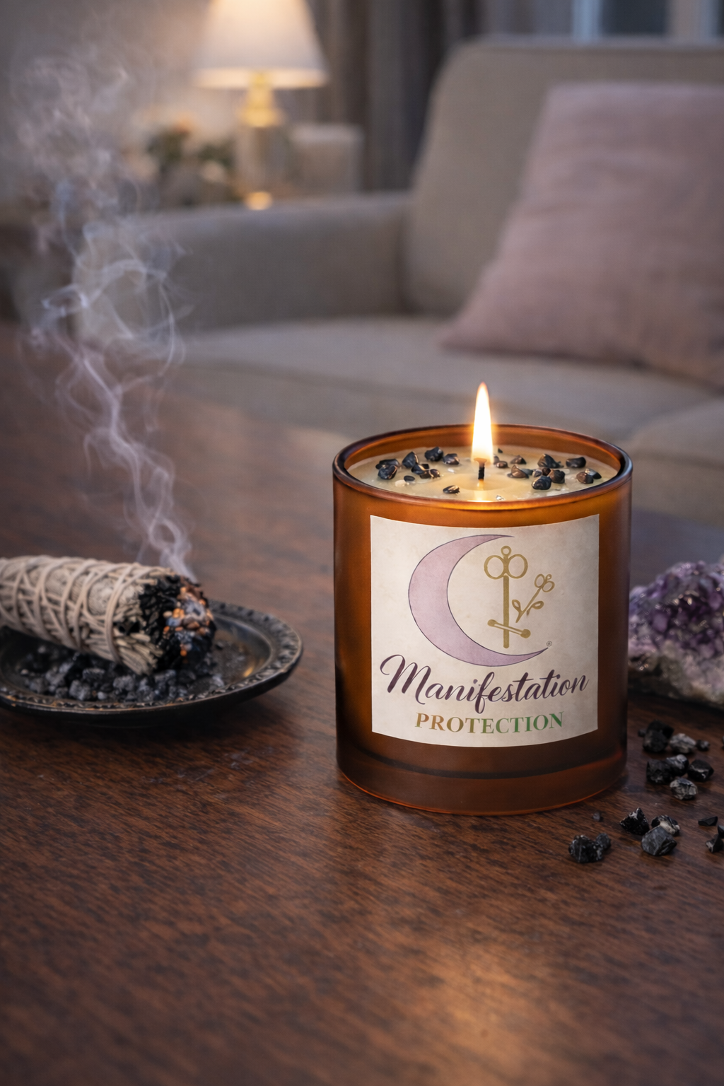 A grounding candle created to cleanse, shield, and restore energetic balance. Ideal for clearing negativity and creating a safe, peaceful space.