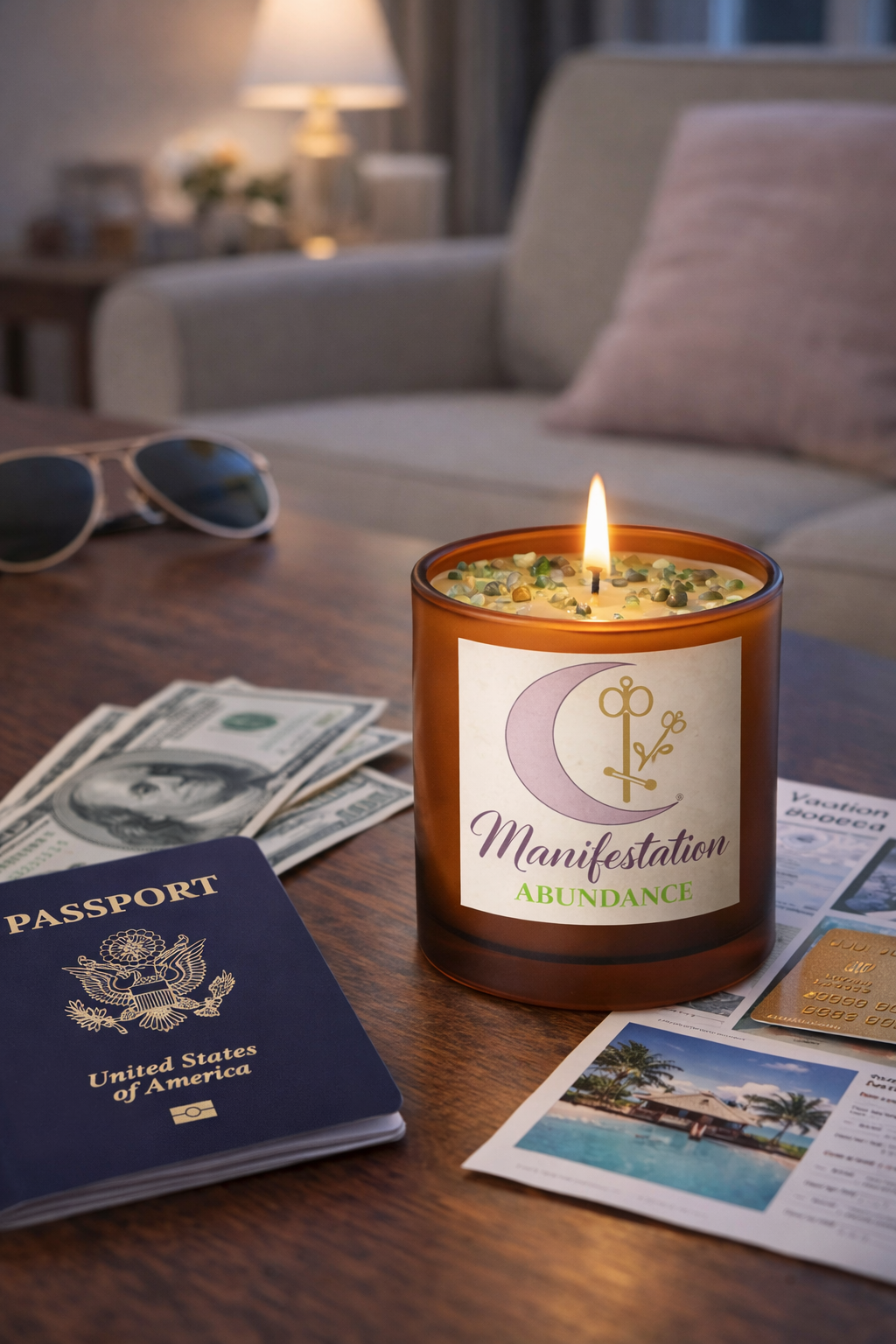 Designed to call in prosperity, opportunity, and aligned success. This candle supports wealth in all forms—money, freedom, travel, and expansion.