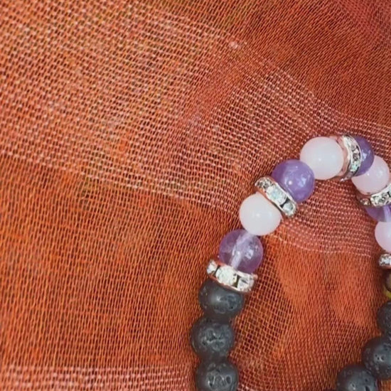 The Eternal Heart Bracelet is a timeless symbol of unconditional love and emotional harmony. Hand-strung with premium crystals rose quartz to open the heart to self-love and deep connections, and amethyst to bring calming balance and spiritual clarity this piece nurtures both romantic and self-compassionate energy.